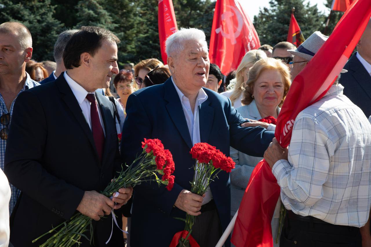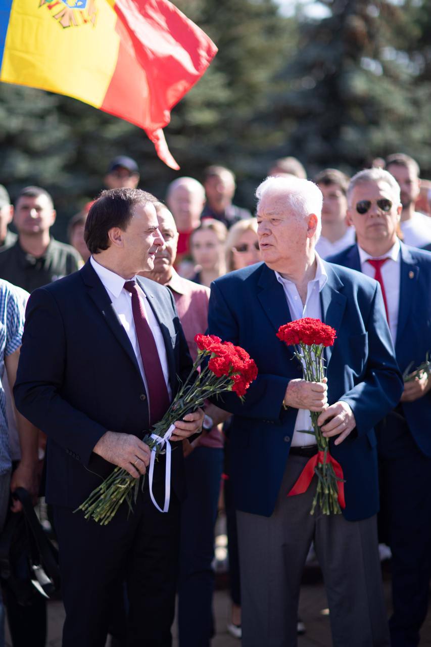 Vladimir Voronin și Vasile Tarlev au participat astăzi la o ceremonie solemnă la Complexul Memorial Eternitate din Chișinău, unde au depus flori la Focul Veșnic. Acest gest comemorează eliberarea Moldovei de sub ocupația fascistă.