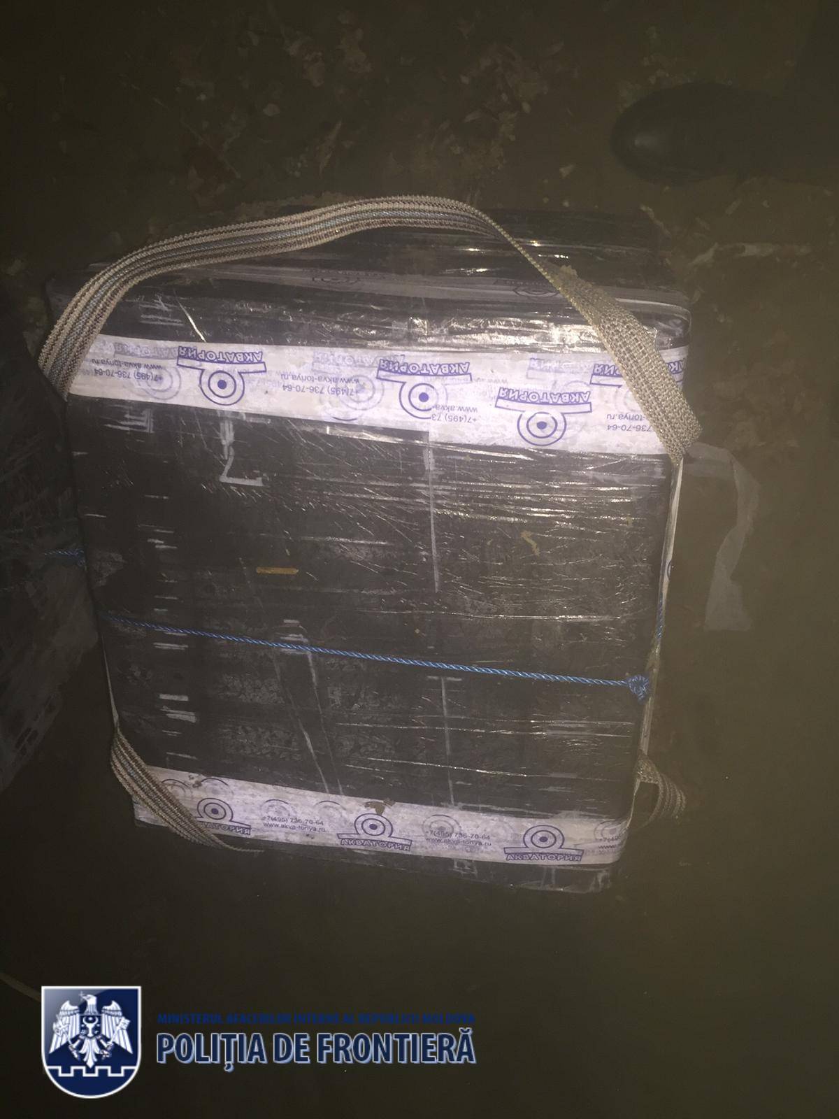 Două colete cu țigări au fost scoase în apa râului Prut. Asta după ce patrula Sectorului Polițuiei de Frontieră Ungheni a observat cum acestea erau purtate de cursul râului în aval. Cele două cutii cu țigări erau învelite în folie de culoare neagră și aveau fixate centuri pentru transportare. La despachetarea acestora s-a stabilit că produsele de tutungerie sunt de marcă Ashima, fără timbru de acciz.