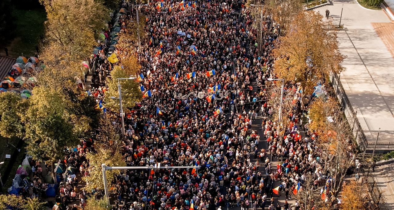 A patra duminică de proteste antiguvernamentale, în fața Președinției. Numărul participanților la manifestații crește în fiecare săptămână. La protestul de astăzi, au participat 60 de mii de oameni, care au cerut din nou demisia guvernării PAS și a Maiei Sandu, precum și organizarea alegerilor parlamentare și prezidențiale anticipate.