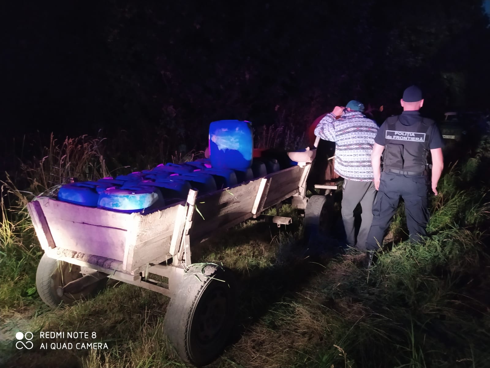 Polițiștii de frontieră au acționat noaptea trecută în baza unei informații operative stopând un atelaj hipo ce transporta 15 butelii pline cu lichid incolor și cu un miros pecific de alcool etilic.