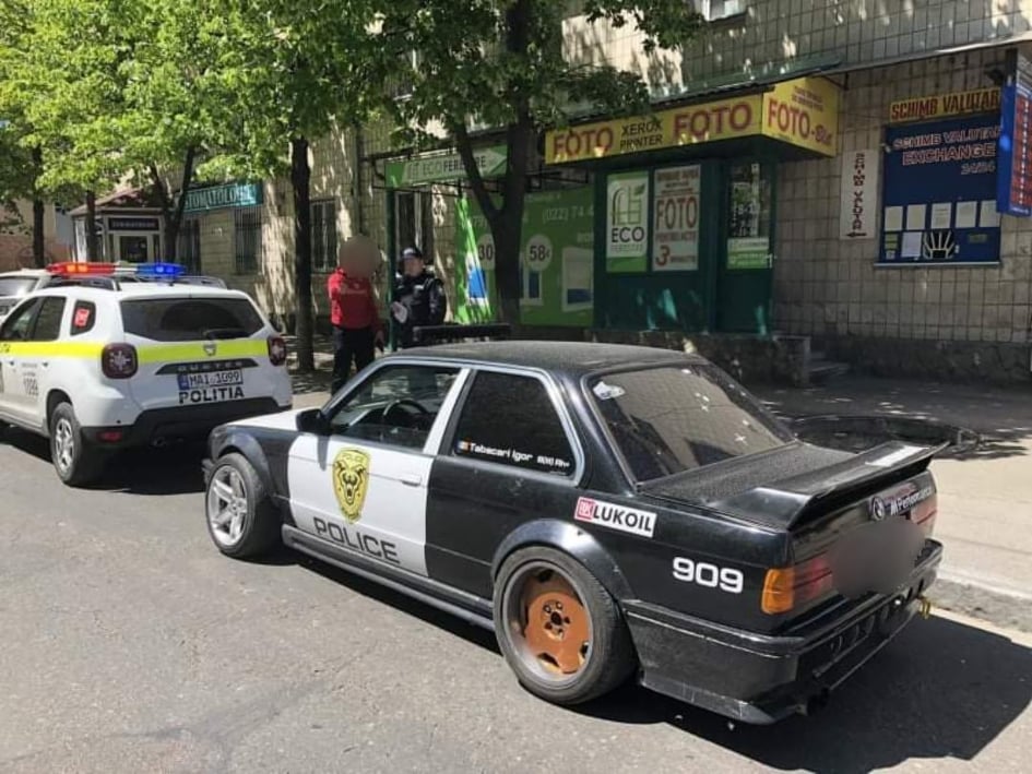Bărbatul a fost amendat după ce a urcat la volanul unui automobil de marcă ”BMW”, care avea pe partea exterioară a mașinii inscripția POLICE, iar pe mașină amplasat, contrar Regulamentului Circulației Rutiere, un dispozitiv luminos de tip LED, care improviza un girofar.