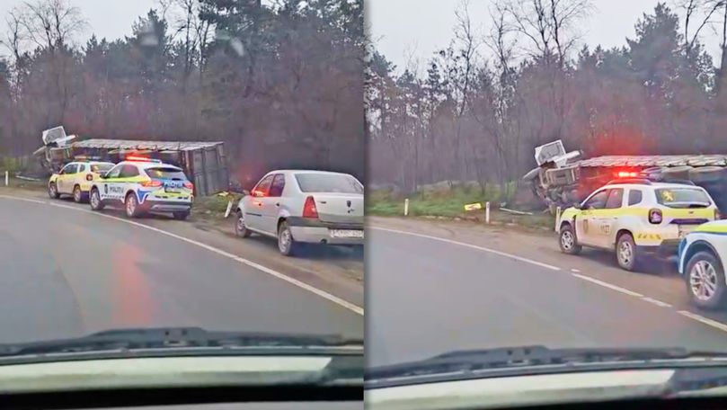 Un autotren s-a răsturnat astăzi pe o șosea din raionul Hâncești, pe traseul care leagă localitatea Fundul Galbenei de drumul principal. Incidentul s-a petrecut în jurul orei 5:00, când camionul, condus de un bărbat de 49 de ani, a pierdut controlul într-o curbă periculoasă şi a derapat, părăsind carosabilul și căzând într-un canal de scurgere.