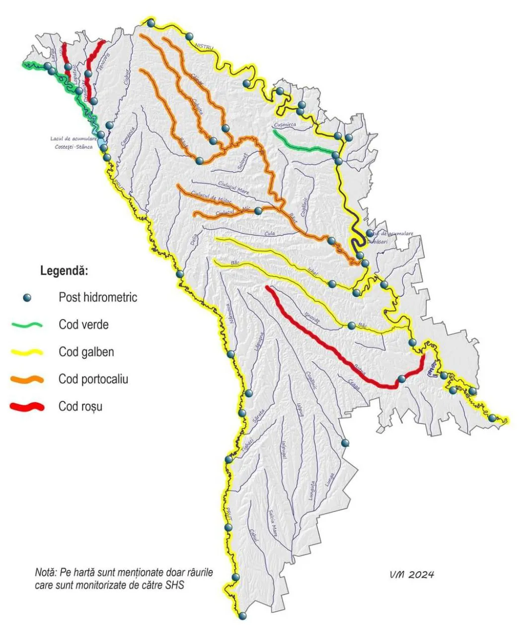 Serviciul Hidrometeorologic de Stat a emis o avertizare hidrologică începând cu ziua de astăzi, 2 iulie, și până la 9 iulie curent.