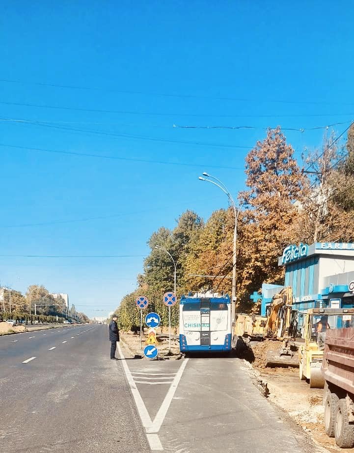 Pe bd. Dacia din sectorul Botanica, pe segmentul cuprins între bd. Decebal și str. Trandafirilor, se fac lucrări de reparație a carosabilului pe ambele părți ale centurilor de deplasare a transportului public. Acțiunile prevăd amenajarea casetelor pentru sporirea capacității portante a drumului și schimbarea învelișului asfaltic pe toată suprafața carosabilă, care cuprinde 16 mii m2.