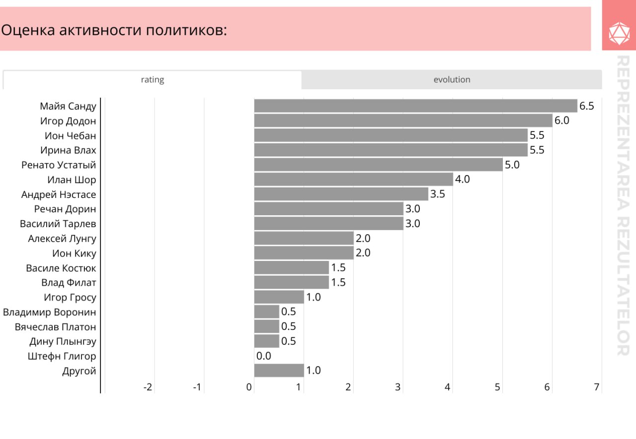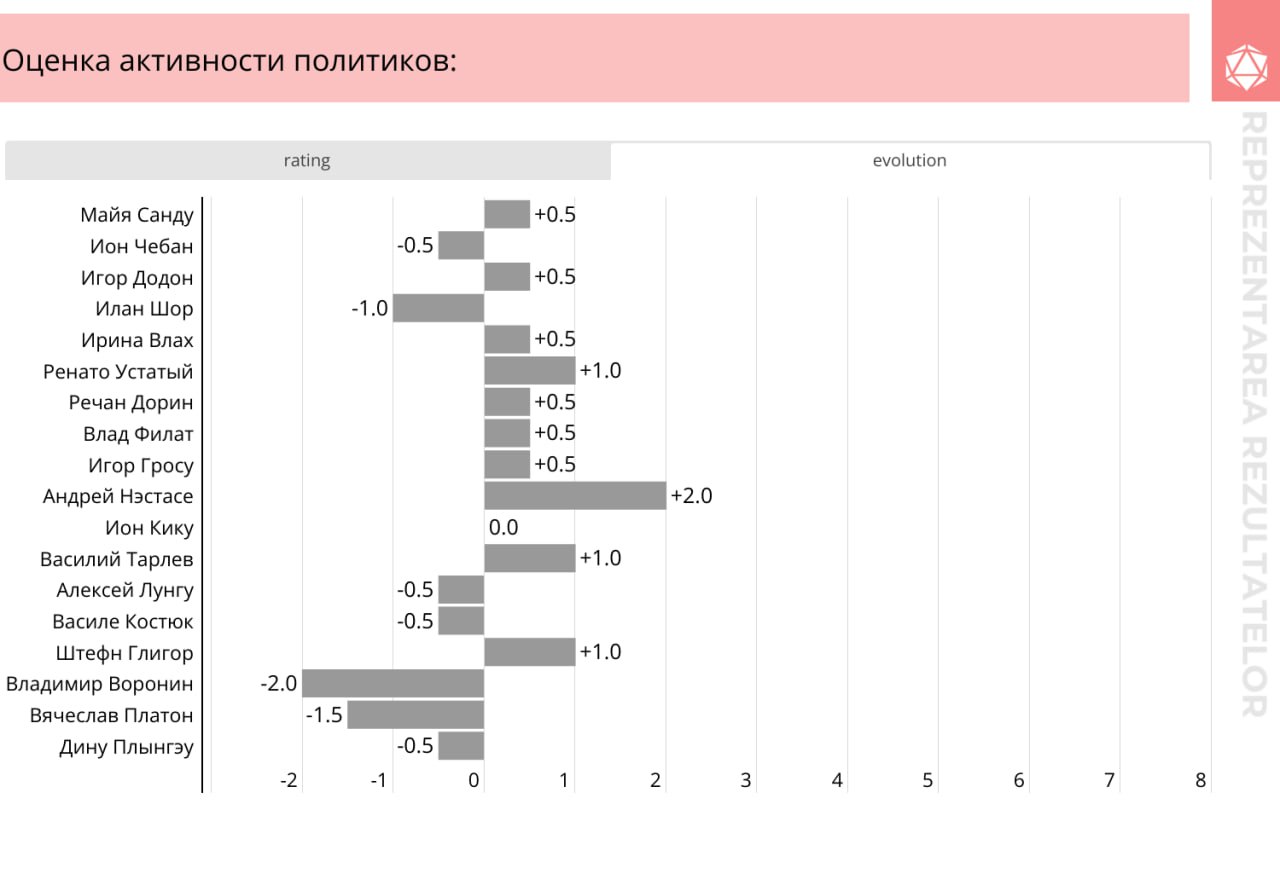 Sondajul „Rating politic” realizat de Intellect Group a evidențiat dinamica schimbărilor în ratingul politicienilor importanți din Moldova. Studiul, la care au participat experți din 20 de țări, inclusiv Moldova, România, Ucraina, SUA, Germania, Austria și Marea Britanie, a oferit o imagine clară asupra tendințelor actuale în percepția publică a politicienilor moldoveni.