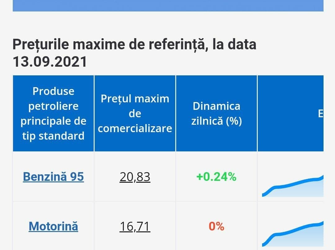 Mâine, în data de 14 septembrie, benzina va costa 20,83 lei sau cu 5 bani mai mult decât azi. Agenția Națională pentru Reglementare în Energetică a afișat prețurile plafon la carburanți. De menționat că motorina va costa ca și azi, 16.71 lei.
