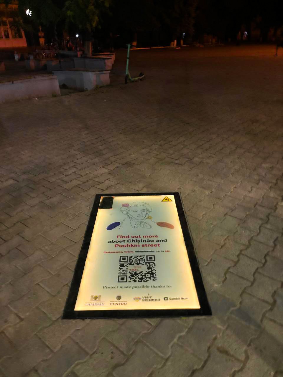 O nouă atracție turistică la Chișinău. La intersecția străzilor 31 August 1989 și Alexandr Pușkin din sectorul Centru al Capitalei găsiți un nou afișaj informativ pietonal, dotat cu panou solar și iluminare autonomă.