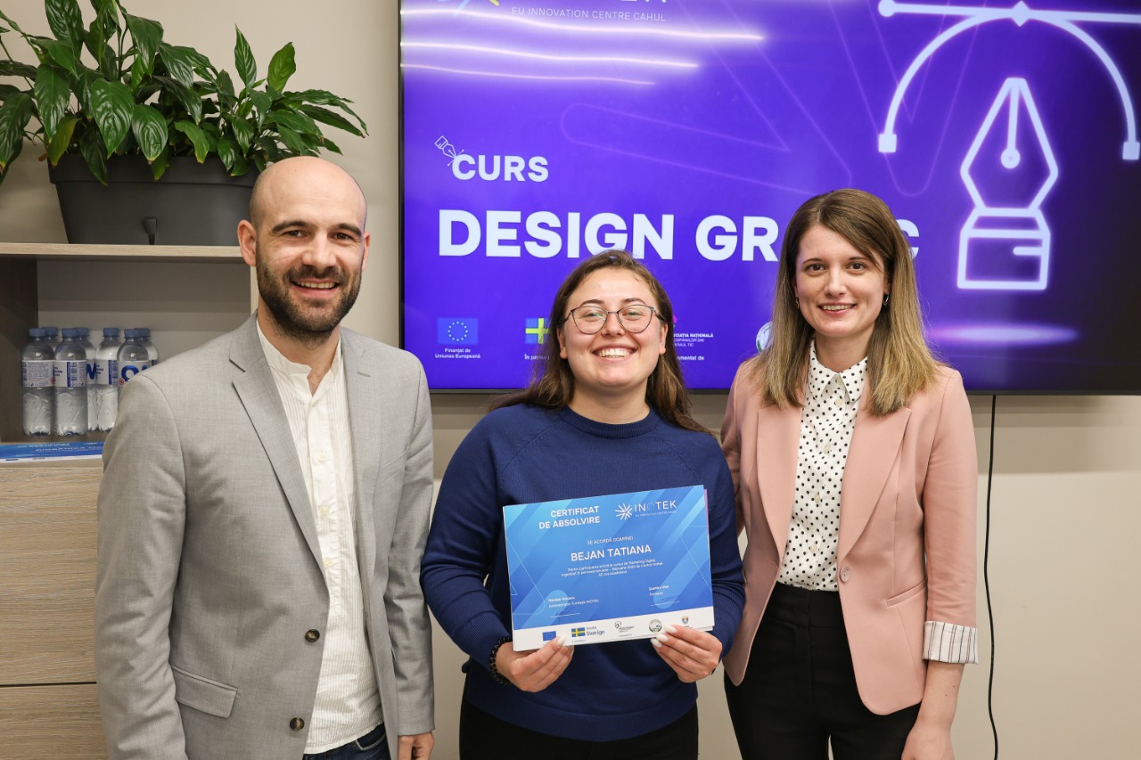 18 persoane din diverse domenii, inclusiv administrație publică și antreprenoriat, s-au ales cu diplome de absolvire a cursurilor de Marketing Digital și Design Graphic, după ce, timp de trei luni, au frecventat lecțiile predate de traineri profesioniști din cadrul centrului Inotek. Cursul de Design Graphic presupune studierea principiilor fundamentale ale designului, crearea de identități vizuale și dezvoltarea abilităților de elaborare a posterelor și afișelor. Acesta a fost desfășurat în perioada decembrie – martie, iar la lecții au participat 8 tineri.