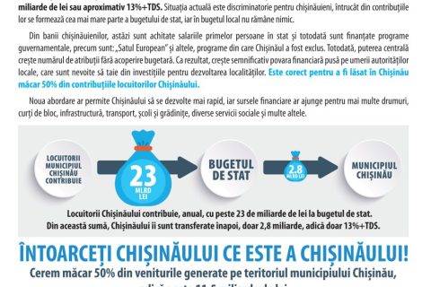 Petiția prin care se cere majorarea defalcărilor bugetare pentru Chișinău până la o cotă de...
