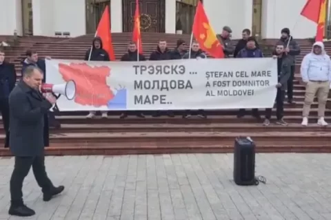 VIDEO// Mișcarea ‘Haiduci’ protestează împotriva ‘separatismului’ în fața Administrației Prezidențiale din Chișinău