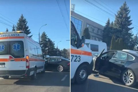 Accident în Chișinău: Ambulanță și Volvo s-au ciocnit la intersecția Grenoble – P. Ungureanu