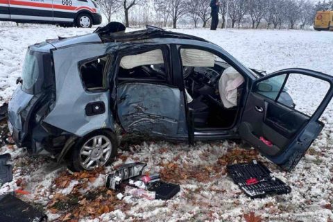 Accident rutier la Sângerei: Un șofer a derapat cu mașina într-un copac