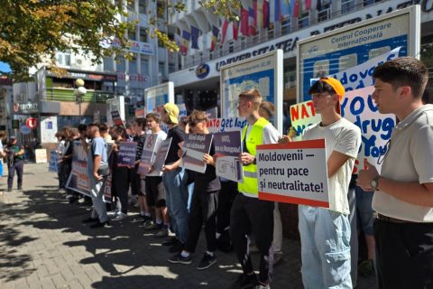 „Nu ne implicați în războaie străine”: tinerii din blocul „Victorie” și mișcarea „Next Generation” au protestat în fața sediului NATO din Chișinău