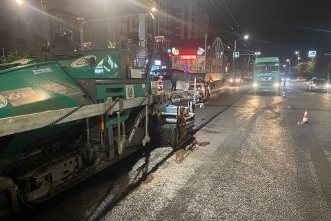 Pe bd. Renaşterii Naţionale, sectorul Rîşcani, au început lucrările de aplicare a ultimului strat de asfalt