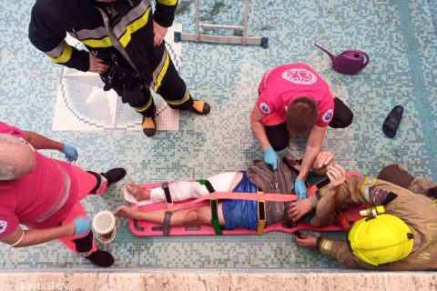 Un bărbat a fost salvat de pompieri după ce a căzut într-un bazin fără apă