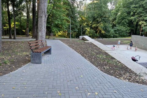 În Parcul „Butoiaș”, sectorul Buiucani lucrările de modernizare continuă. Ceban: Pe alei au fost instalate scaune și urmează montarea coșurilor pentru gunoi