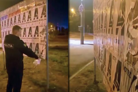 Polițist filmat în timp ce dezlipește pliantele Blocului Alternativa