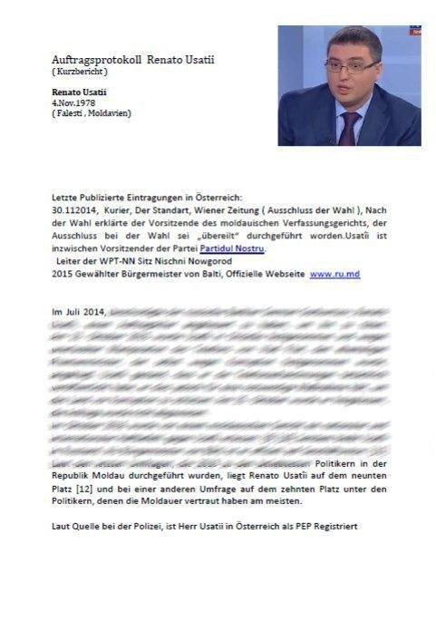 Astfel, autoritățile din Austria au scos la iveală faptul că mai multe informații despre Renato Usatîi au fost șterse, adresele – falsificate, iar companiile și afacerile sunt înregistrate pe numele unor persoane terțe.
