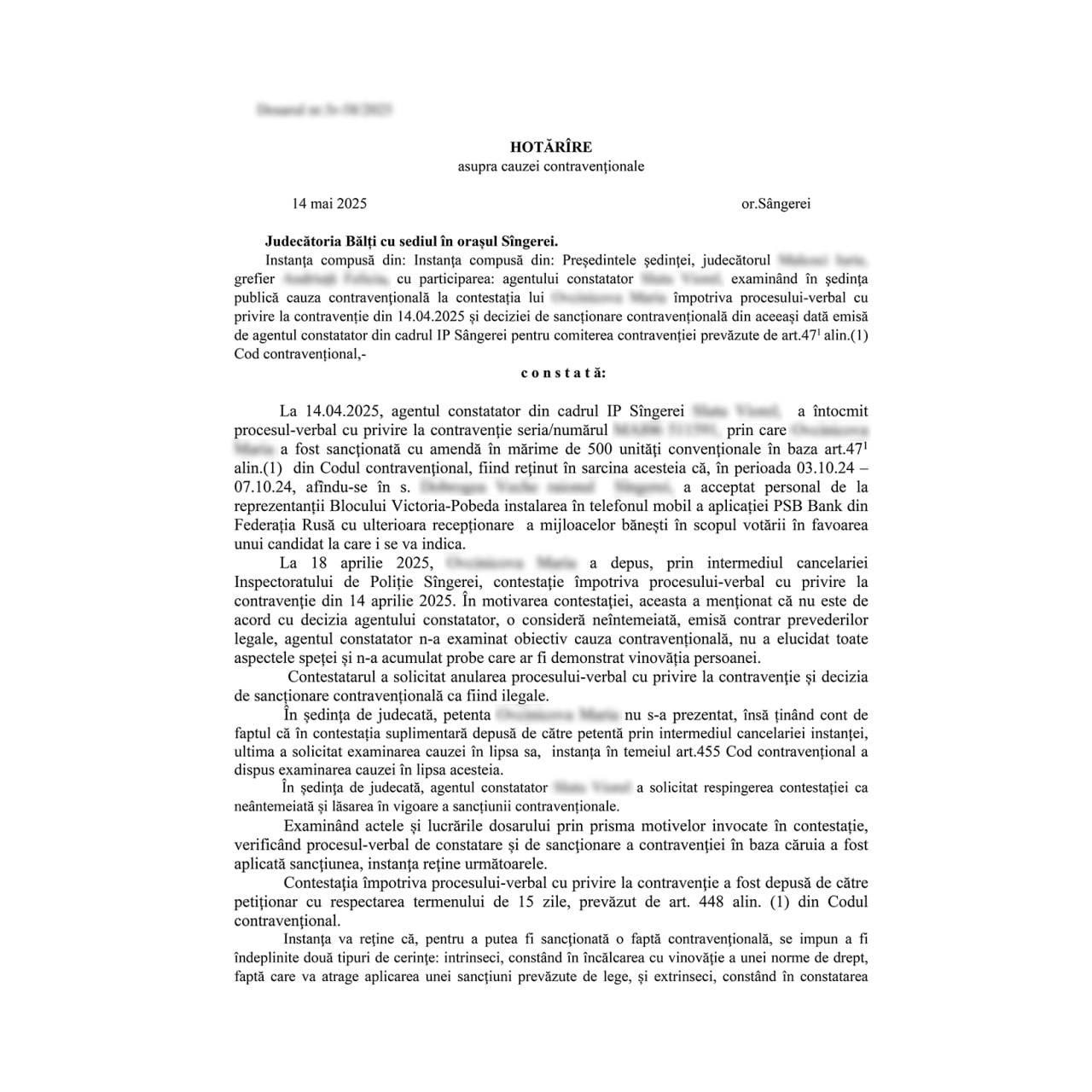 Blocul politic „Victorie” a anunțat o victorie în instanță, după ce tribunalul a respins tentativa poliției de a amenda una dintre activistele sale pentru o presupusă „infracțiune electorală” pe care formațiunea politică o consideră fabricată.