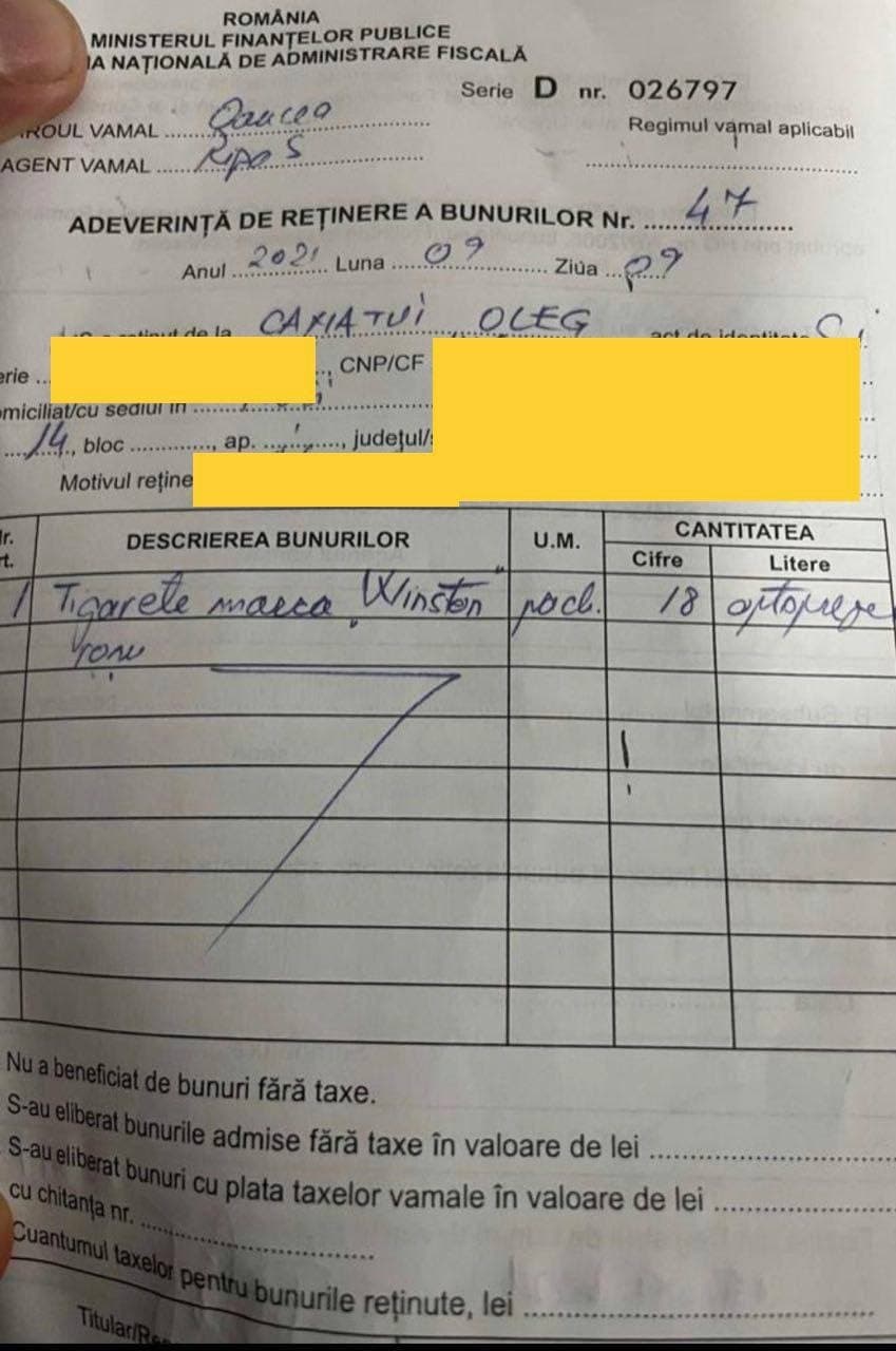 Astfel, potrivit documentelor, cazul a avut loc în data de 9 septembrie 2021, la postul vamal Oancea. În explicația pe care deputatul PAS a oferit-o autorităților române, se spune că acesta nu cunoștea legislația din țara vecină. Deocamdată nu este clar cum parlamentarul a reușit să treacă de vameșii moldoveni.