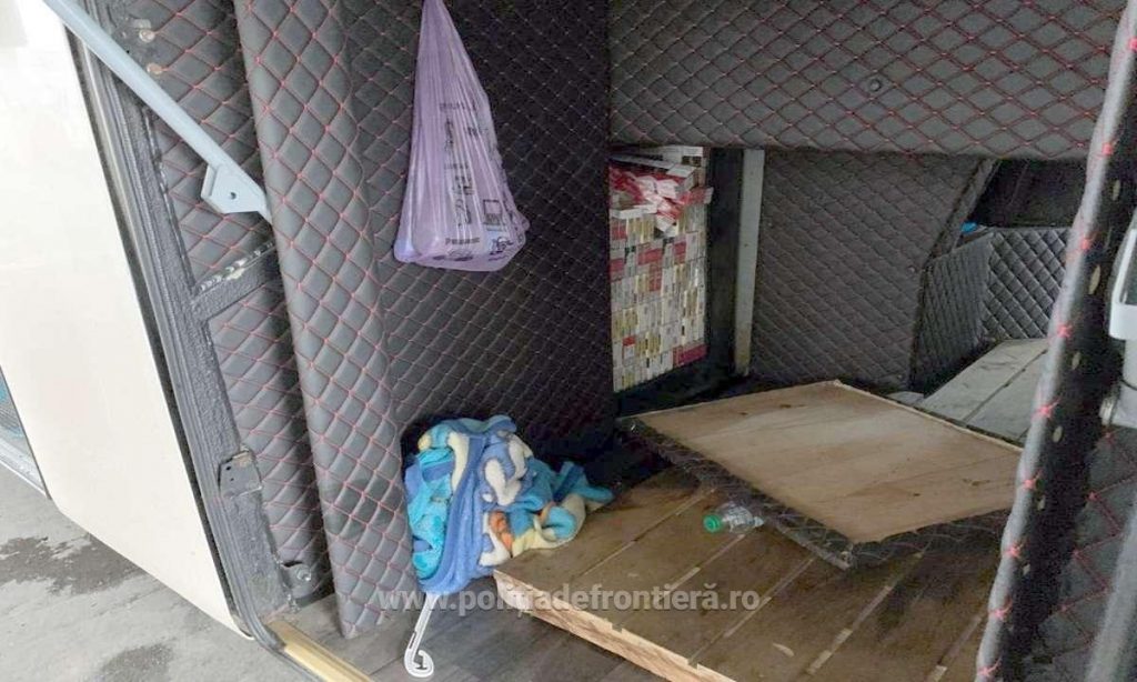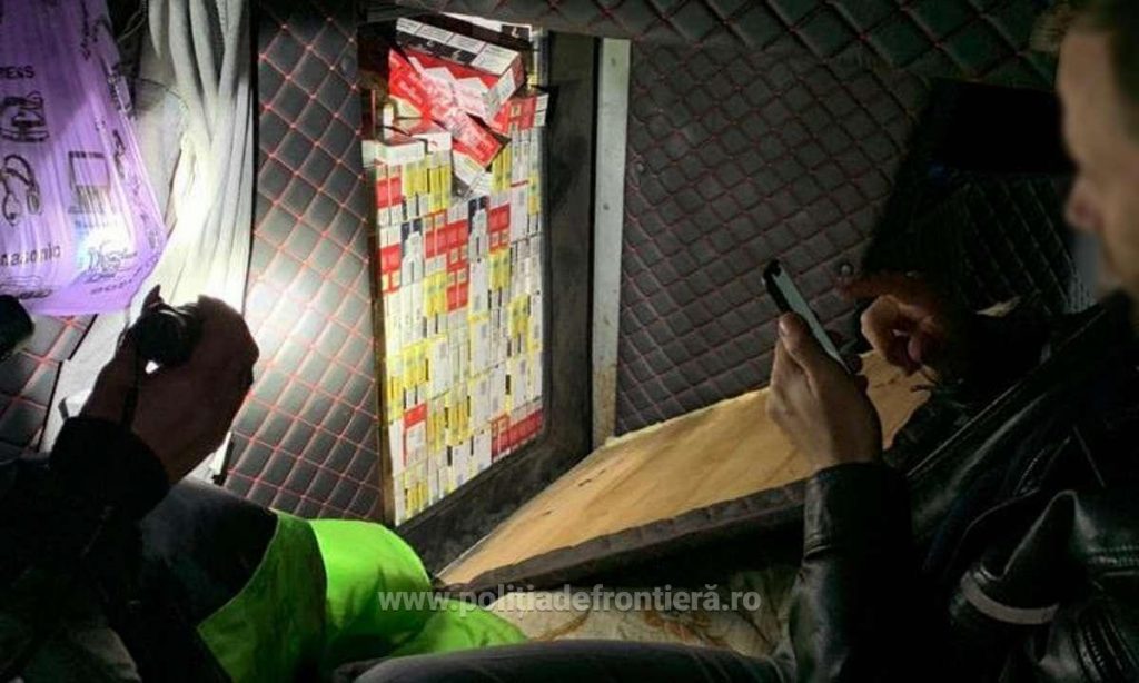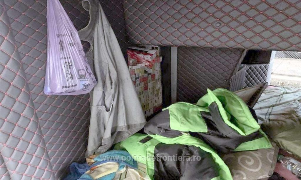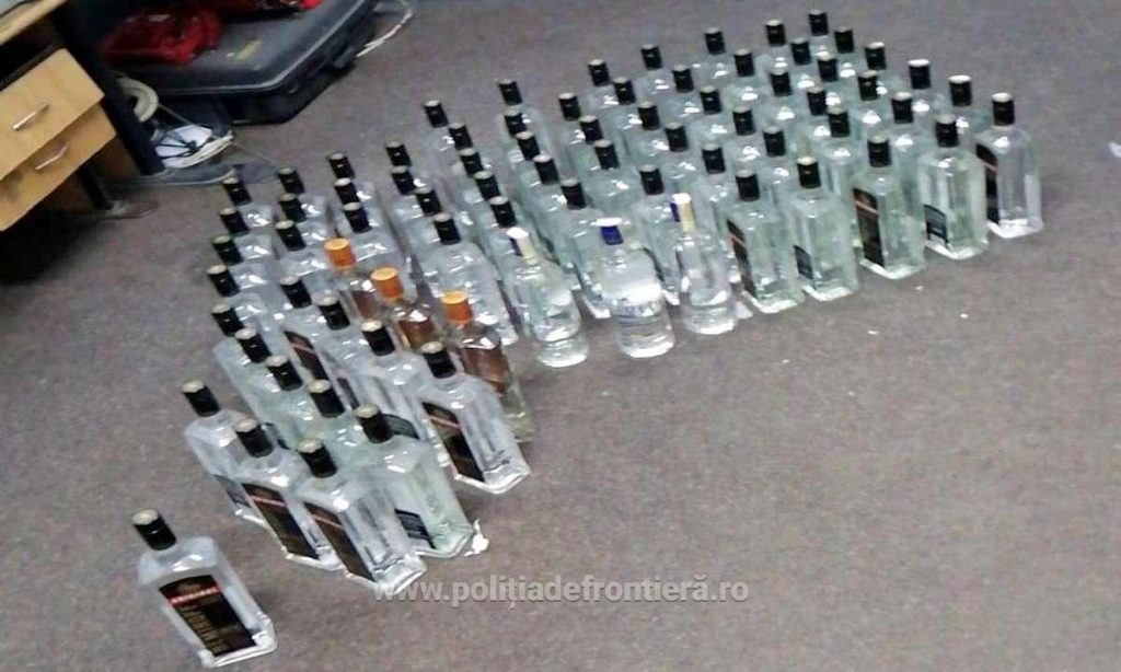 În interiorul căruia polițiștii de frontieră români au găsit 1.000 de ţigarete și 77 de sticle cu votcă a câte un litru fiecare.