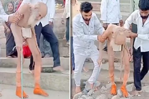 VIDEO// Un pustnic de 111 ani a fost scos la lumina zilei dintr-o peșteră din India