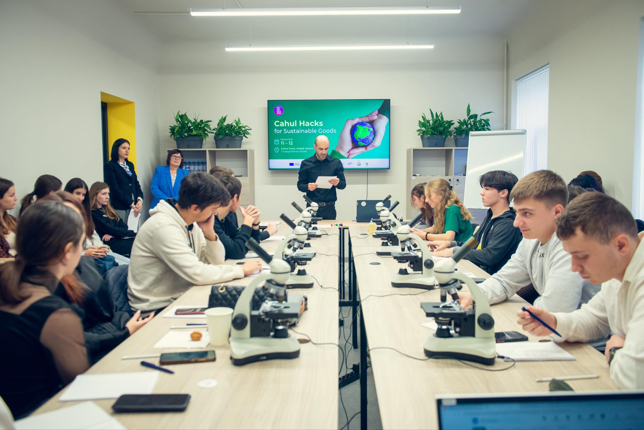 Hackathonul „Soluții tech pentru mediu” a fost organizat de EU Innovation Centre Cahul – INOTEK. Centrul a fost lansat în parteneriat cu Universitatea de Stat “Bogdan Petriceicu Hasdeu” din Cahul și Primăria Municipiului Cahul cu sprijinul financiar al Uniunii Europene și Ambasadei Suediei în cadrul EU4Moldova: Startup City Cahul, proiect implementat de Asociația Națională a Companiilor din domeniul TIC.