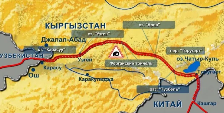 Este planificat ca noua linie de cale ferată să înceapă la pasul Torugart – la granița dintre Kârgâzstan și China, unde există deja o linie de cale ferată funcțională. În continuare, autostrada va merge spre Uzbekistan, unde va face legătura cu o altă ramură deja existentă a căilor ferate uzbece.