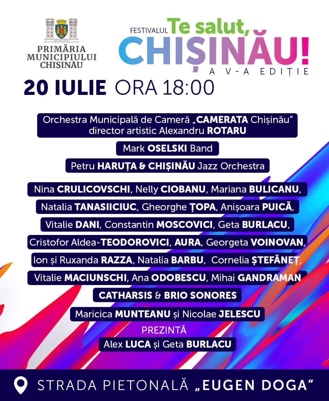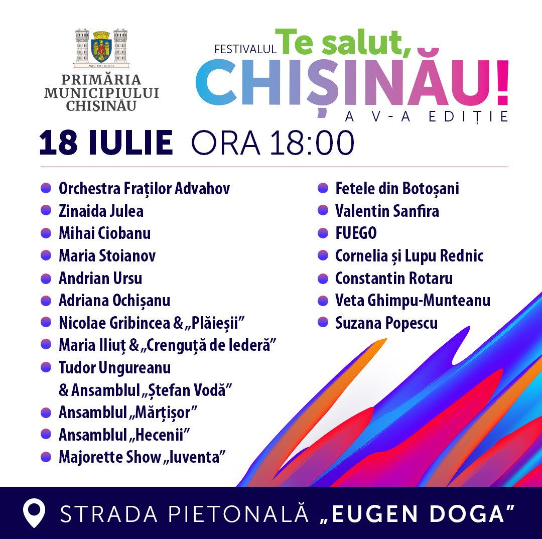 Primăria Chișinău vă invită la Festivalul „Te salut, Chișinău!”, dedicat marcării celor 589 de ani de la prima atestare documentară a orașului nostru.