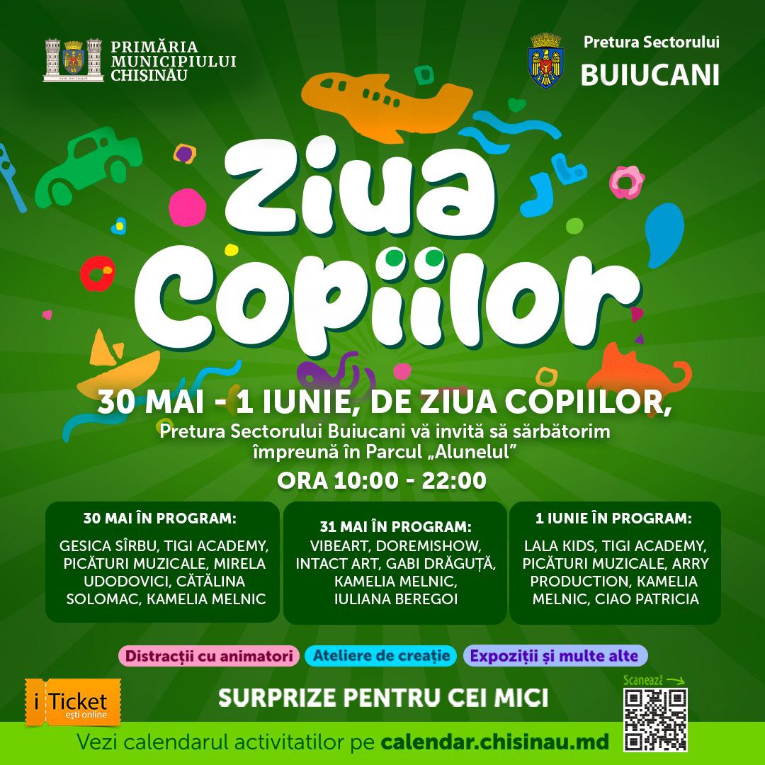 Primăria Chișinău invită toți locuitorii și oaspeții orașului să marcheze împreună Ziua Internațională a Copiilor, printr-o serie de evenimente dedicate celor mici, organizate în perioada 30 mai – 1 iunie, în toate sectoarele Capitalei.