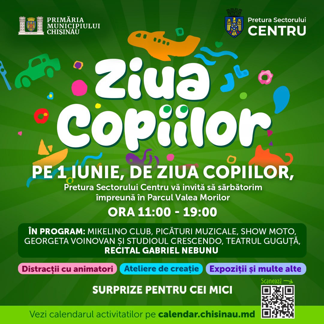 Primăria Chișinău invită toți locuitorii și oaspeții orașului să marcheze împreună Ziua Internațională a Copiilor, printr-o serie de evenimente dedicate celor mici, organizate în perioada 30 mai – 1 iunie, în toate sectoarele Capitalei.