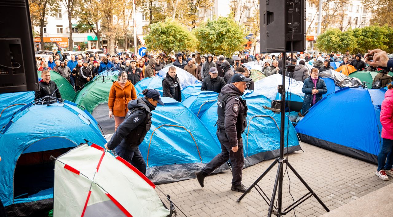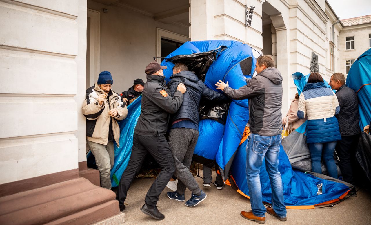 În semn de protest față de acțiunile guvernării, participanții la acțiune au decis să instaleze noi corturi în fața Procuraturii Generale, însă au fost împiedicați de poliție. Asta a înfuriat mulțimea, care a acuzat forțele de ordine de complicitate cu puterea uzurpatoare.