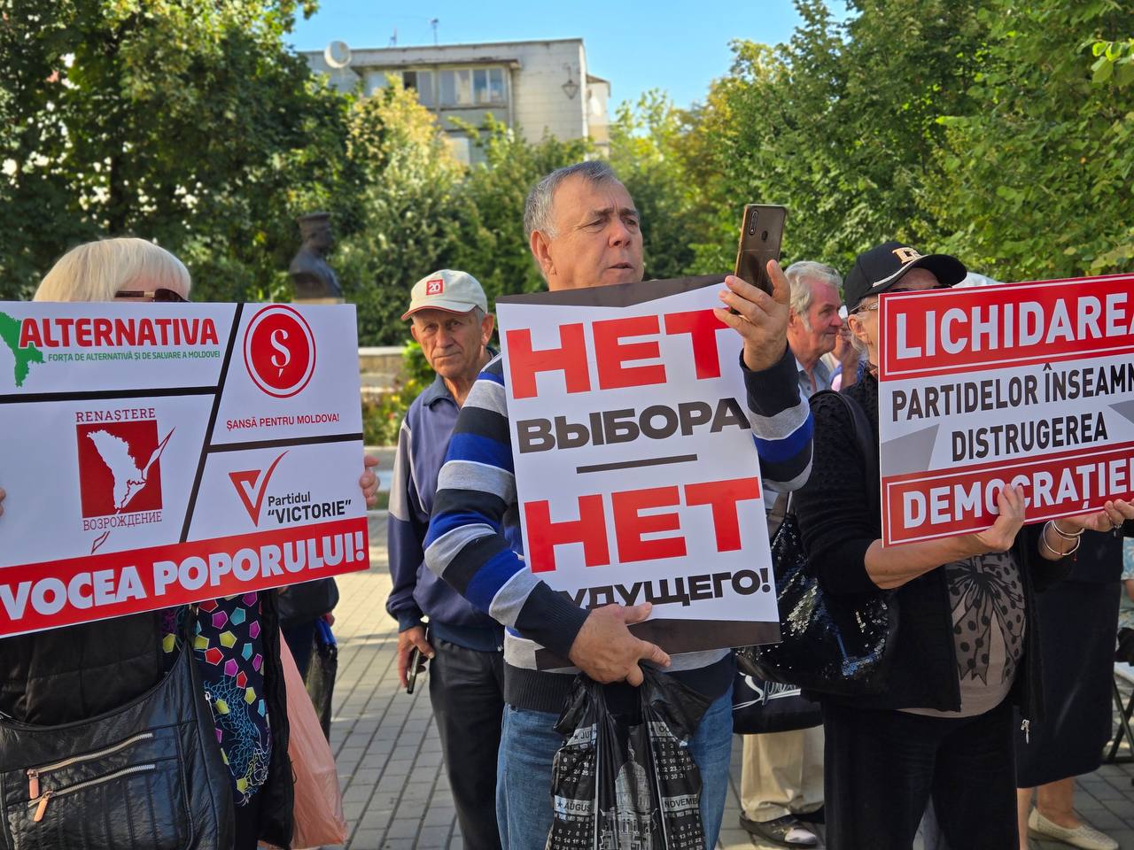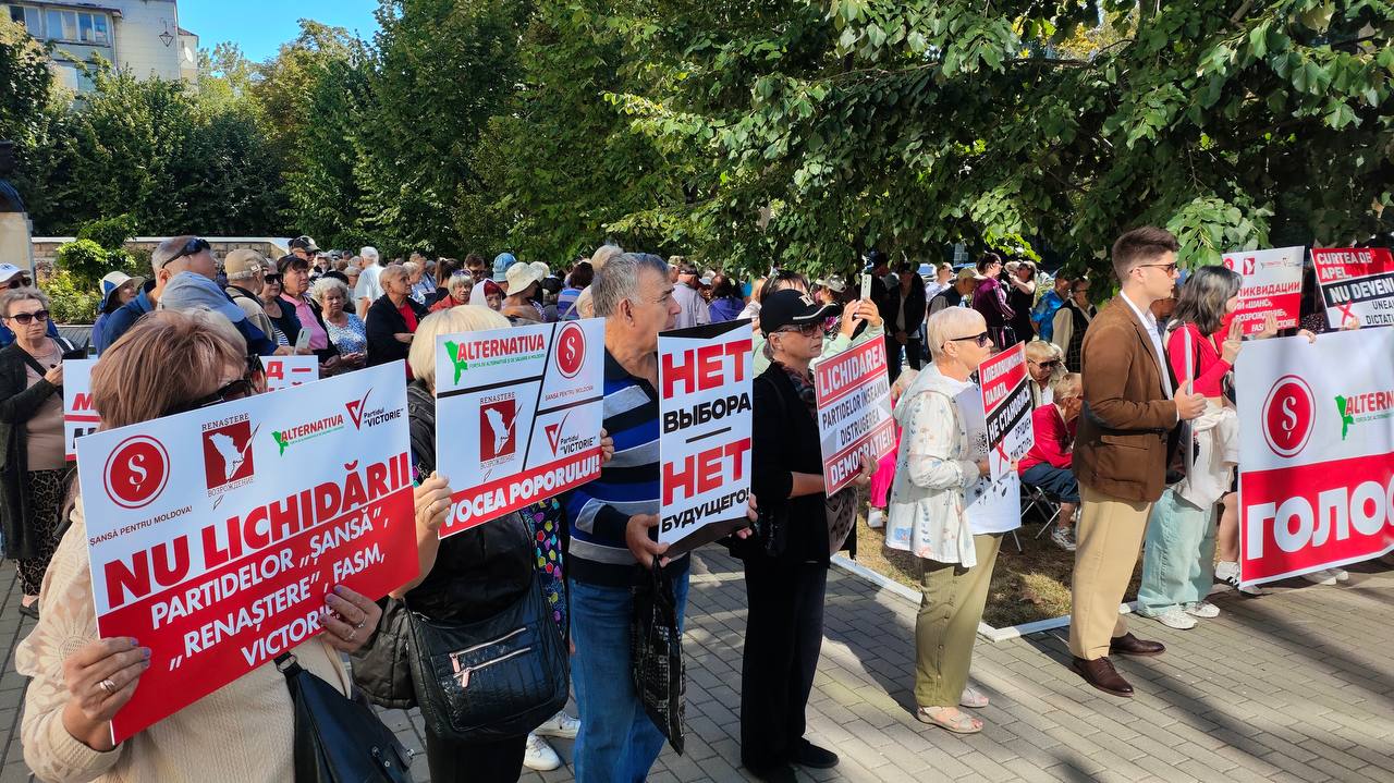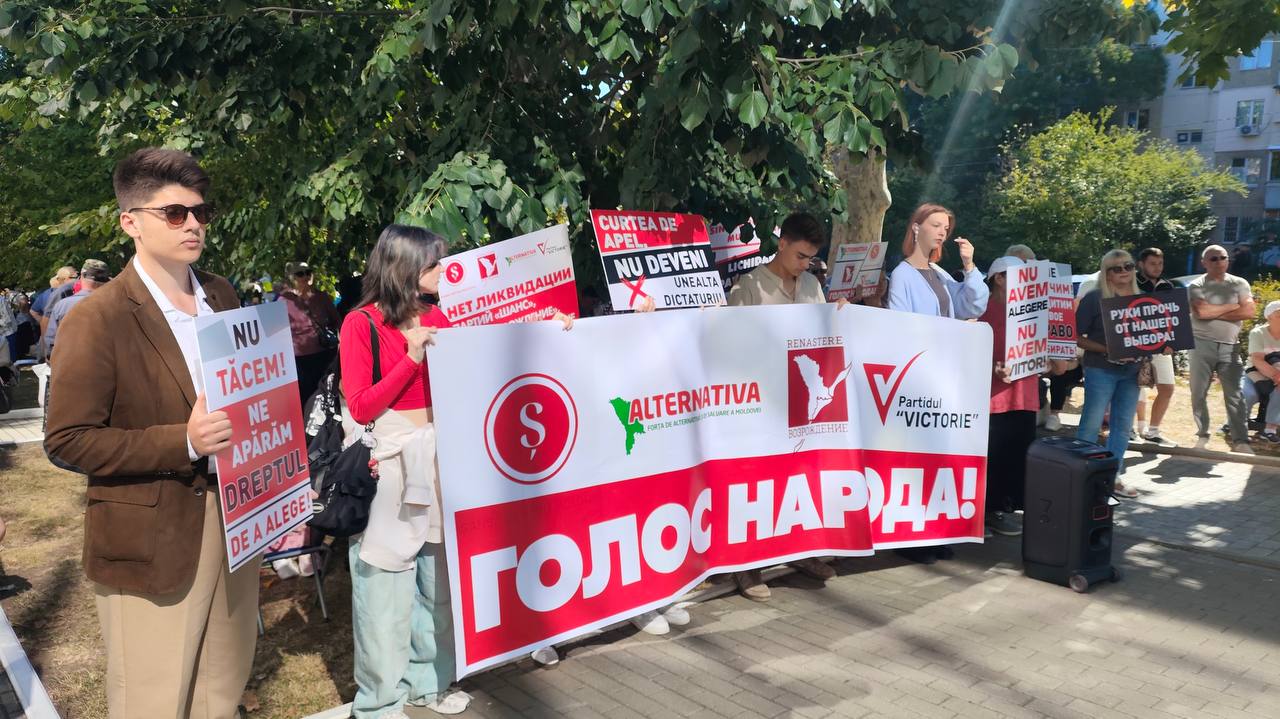 Decizia CSJ a provocat proteste masive în fața Curții de Apel Centru, unde a fost examinată cererea de dizolvare a partidelor. Susținătorii, purtând pancarte cu lozinci precum „Nu vom tăcea! Apărăm dreptul de a alege”, „Jos mâinile de pe alegerea noastră!” și „Curte de Apel, nu deveni instrumentul dictaturii!”, acuză puterea PAS și pe președinta Maia Sandu că folosesc justiția pentru a elimina opoziția. Protestatarii consideră procesul o „răzbunare politică” menită să suprime vocile critice la adresa autorităților.