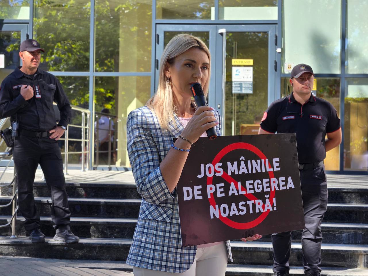 „Vreau să țin în mâini o pancartă cu mesajul clar: ‘Jos mâinile de pe alegerea noastră!’. Mulțumesc tuturor celor care susțin aceste mesaje, pentru că, sincer, m-am săturat să trăiesc în țara mea și să mă simt străină. Îi îndemn pe toți să nu tacă, ci să-și exprime opiniile. Democrația înseamnă libertate de exprimare, dar ceea ce vedem astăzi este dispreț față de propriul popor. Se planifică lichidarea a patru partide, și sperăm că cei care iau această decizie se vor gândi bine. Dar știm că ei acționează la ordin și, din păcate, încearcă doar să-și păstreze locurile de muncă”, a declarat ea.