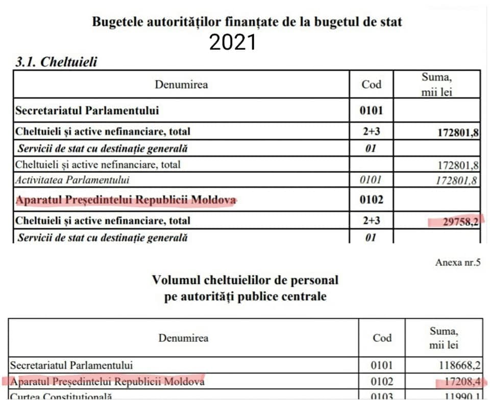 Bugetul Aparatului Președintelui Maia Sandu pentru 2021 este cu peste 17 milioane de lei mai mare, decât cel al lui Igor Dodon în primul an de activitate. Calculul a fost prezentat de către vloggerul Vitalie Florea pe pagina sa de Facebook. Activistul civic se întreabă, „oare așa un președinte și-au dorit moldovenii?”.