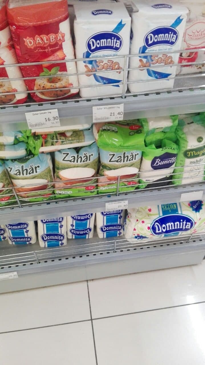 Astfel, prețul afișat pe rafturile unui mare lanț de magazine din Chișinău pentru un kilogram de zahăr este de 21,40 de lei. Asta se întâmplă chiar dacă Comisia pentru Situații Excepționale (CSE) a interzis majorarea prețurilor la mai multe produse de primă necesitate, printre care și zahărul.