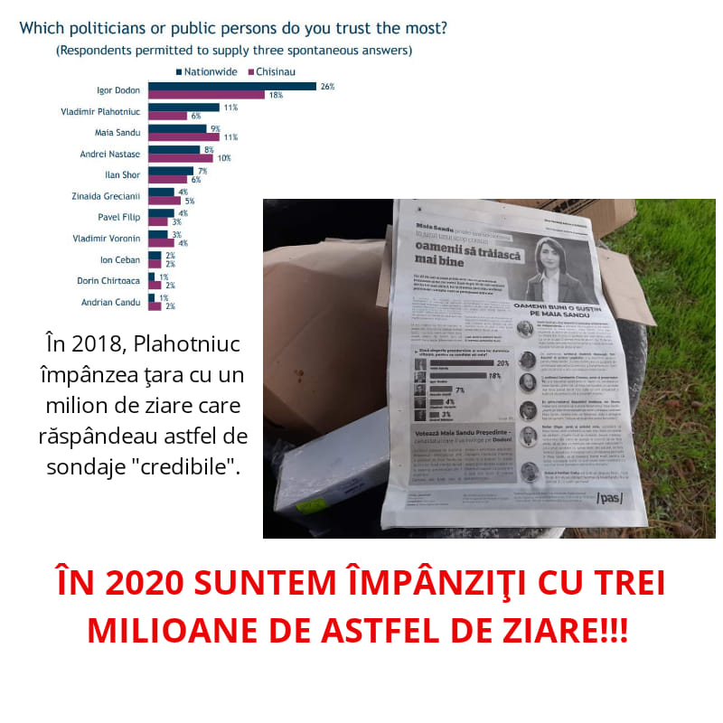 Ea a mai scris că, în 2018 Plahotniuc a împânzit țara cu un milion de ziare care răspândeau diferite sondaje manipulatorii, iar acum PAS împânzește țara cu trei milioane de astfel de ziare. „Ca să ne linșeze mediatic, Plahotniuc a avut nevoie de un milion de pliante. Ăștia, au decis să ridice planca – au nevoie de trei milioane!!!”, a mai scris Inga Grigoriu.