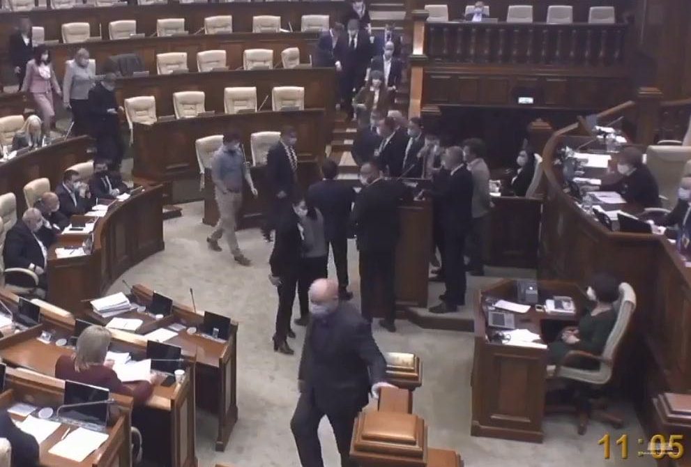 Haos în Parlament. Deputații PAS și PPDA au blocat tribuna Legislativului, periclitând activitatea instituției. Parlamentarii au fost nevoiți să ia o pauză de jumătate de oră. Se întâmplă după ce unul dintre liderii PAS, Igor Grosu, a amenințat cu destabilizări în masă, dacă inițiativa PSRM cu privire la SIS nu va fi retrasă de pe ordinea de zi.