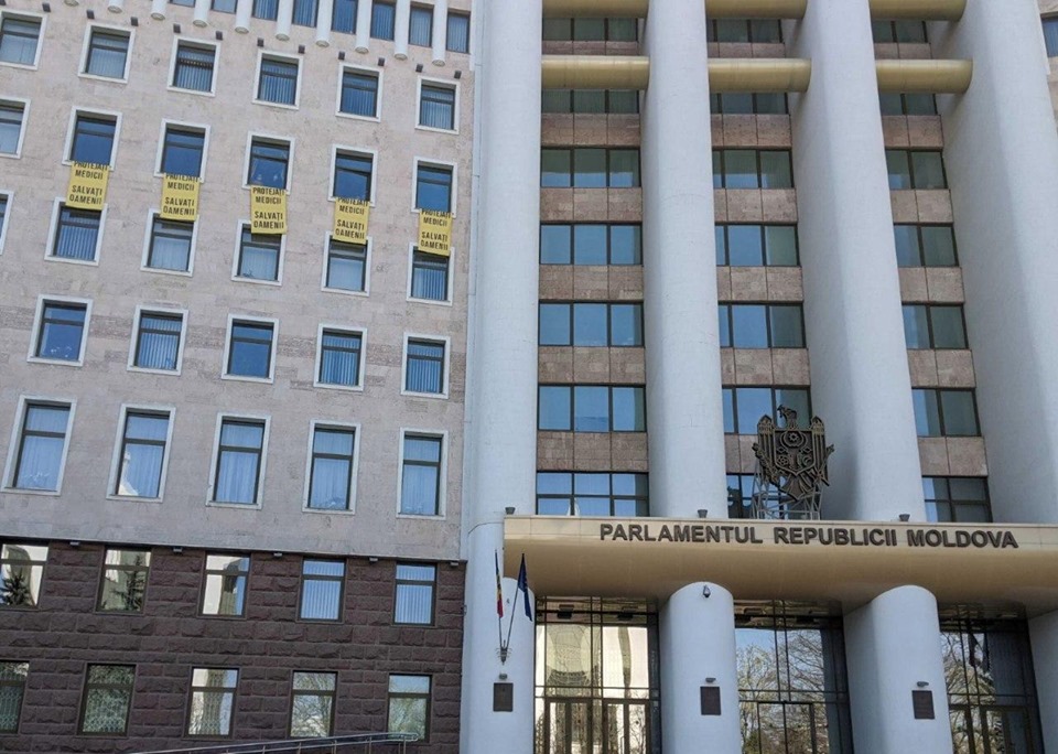 Deputații Partidului Acțiune și Solidaritate, condus de Maia Sandu, au atârnat pe ferestrele Parlamentului mesaje de susținere a medicilor din Moldova. Fotografiile au fost publice pe pagina de Facebook a PAS, transmite Breaking News.
