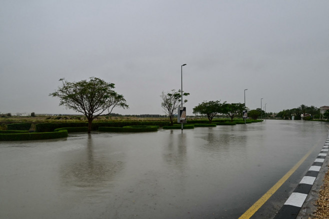 Imagini video din orașul de coastă din Emiratele Arabe Unite Ras Al-Khaimah, văzute de CNN au surprins palmieri aplecați în bătaia vântului puternic, în timp ce ploile abundente au inundat drumuri, iar fulgerele au luminat cerul.