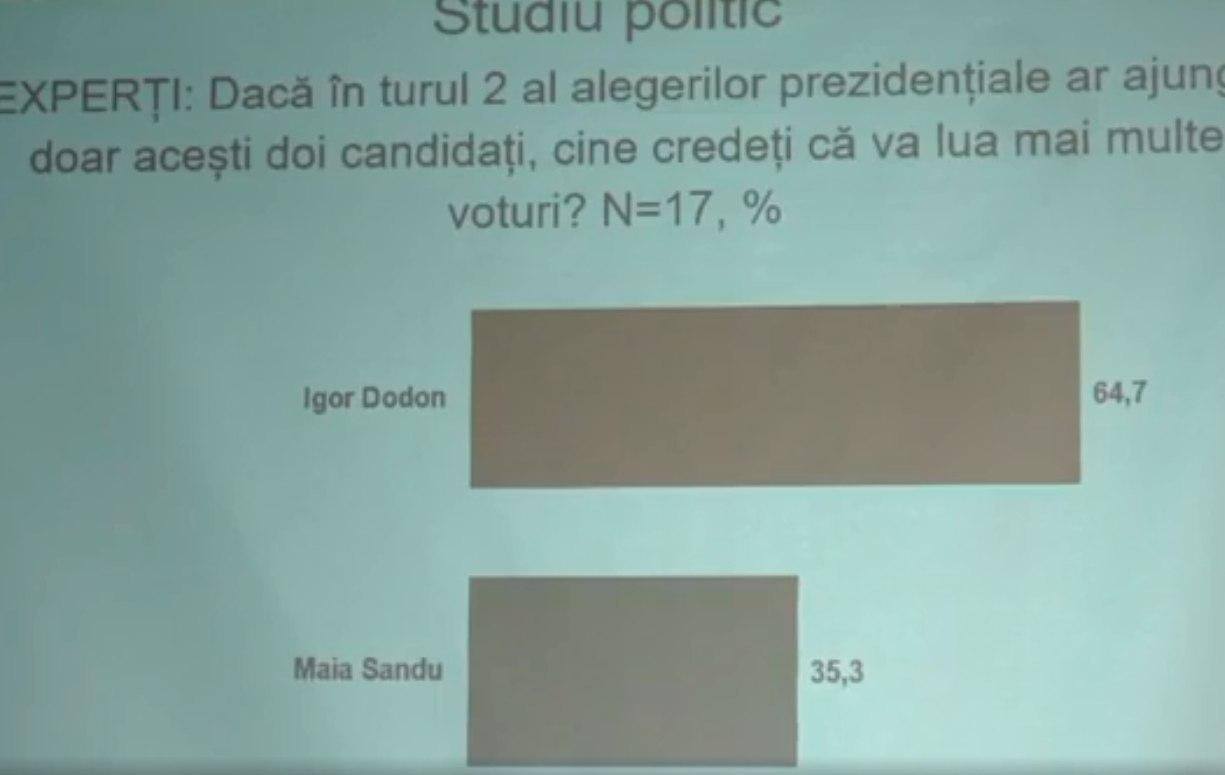 Astfel, pentru președintele, Igor Dodon, s-au expus aproape 65% din experți, iar pentru liderul PAS, Maia Sandu, doar 35%.