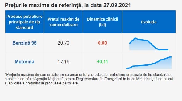 Motorina se scumpește, iar prețul la benzină rămâne neschimbat. Agenția Națională pentru Reglementare în Energetică (ANRE) a stabilit prețul plafon la carburanți, pentru marți, 28 septembrie.