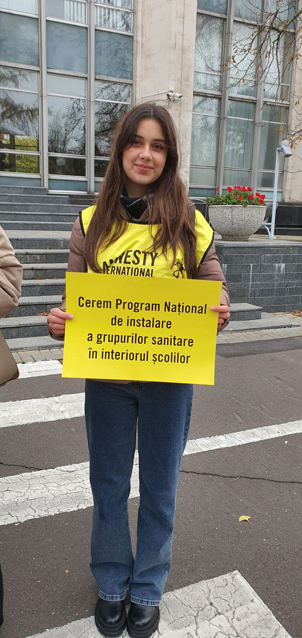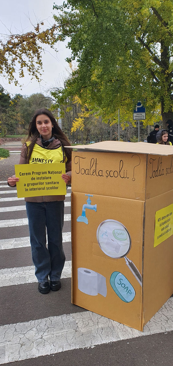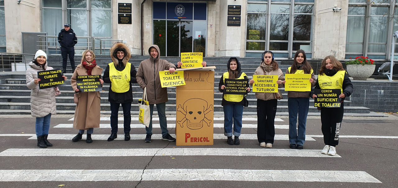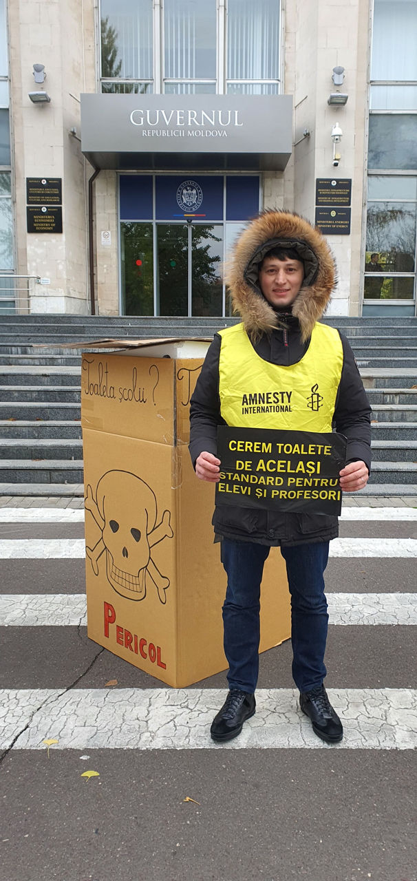 „Astăzi, cu ocazia Zilei mondiale a toaletei, am susținut dreptul elevilor din școlile din Republica Moldova, care au toalete murdare, aflate în curtea școlii, fără apă și fără căldură. Prin această acțiune, am dorit să atragem atenția asupra importanței accesului la apă, igienă și sanitație în toate școlile din țară”, scriu reprezentanții Amnesty International Moldova.