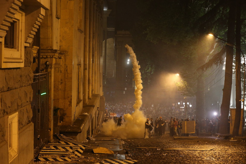A fost a doua noapte cu proteste violente în capitala Georgiei, Tbilisi. Poliția a dat cu gaze lacrimogene și grenade asurzitoare în protestatarii care încercau să intre în parlament. Furia lor este îndreptată împotriva controversatului proiect de lege „a agenților străini”, care ieri a fost adoptat și în a doua lectură de Parlament, în ciuda mobilizării masive din stradă.