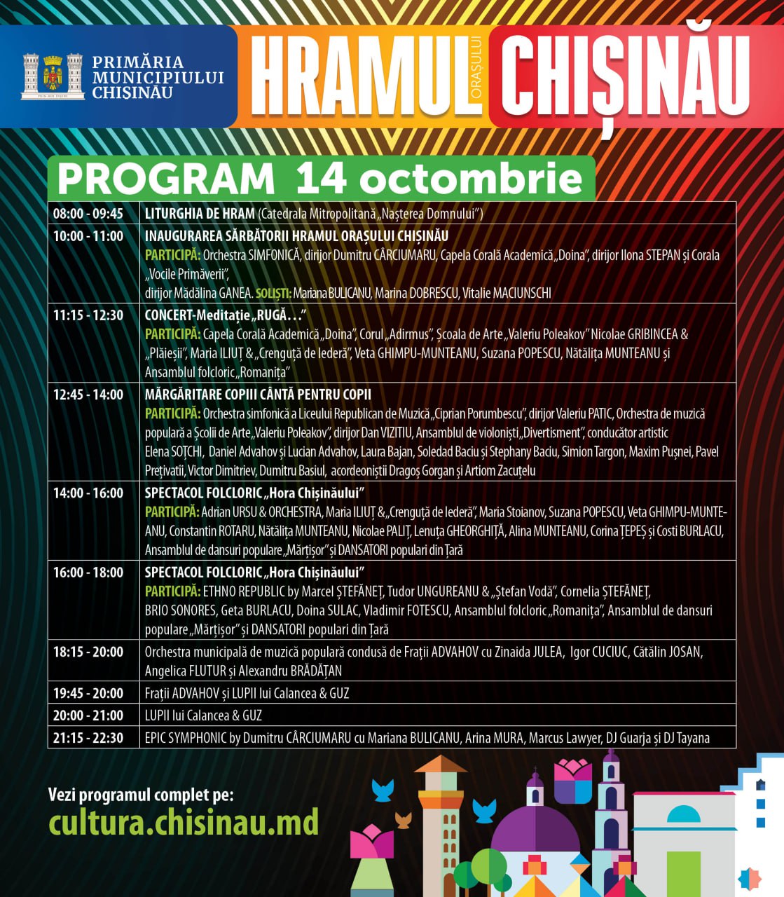 Programul complet al zilei de 14 octombrie poate fi vizionat pe pagina cultura.chisinau.md