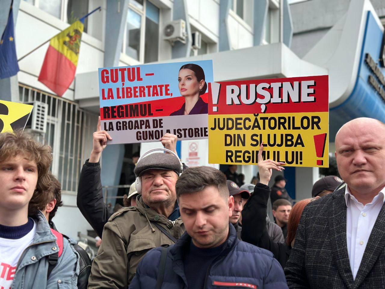 Pe fundalul procesului, în capitală au avut loc proteste în sprijinul Evgheniei Guțul. Poliția a intensificat măsurile de securitate, speriind chiar și proprii concetățeni. Protestatarii cu steaguri naționale au fost împiedicați să participe, iar suporturile steagurilor au fost considerate „potențiale arme”.