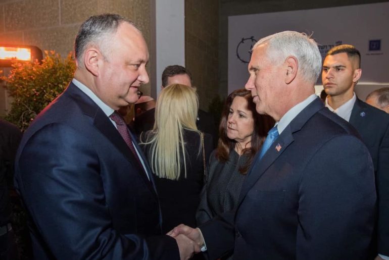„La Ierusalim am avut o scurtă discuție informală cu Vicepreședintele SUA, Mike Pence. Am abordat mai multe chestiuni legate de dialogul strategic bilateral dintre țările noastre, subliniind necesitatea de a continua consolidarea relațiilor în toate domeniile de interes major. Am reiterat angajamentul conducerii Republicii Moldova față de obligațiunile internaționale asumate.”, se spune în mesajul transmis de Președinte.