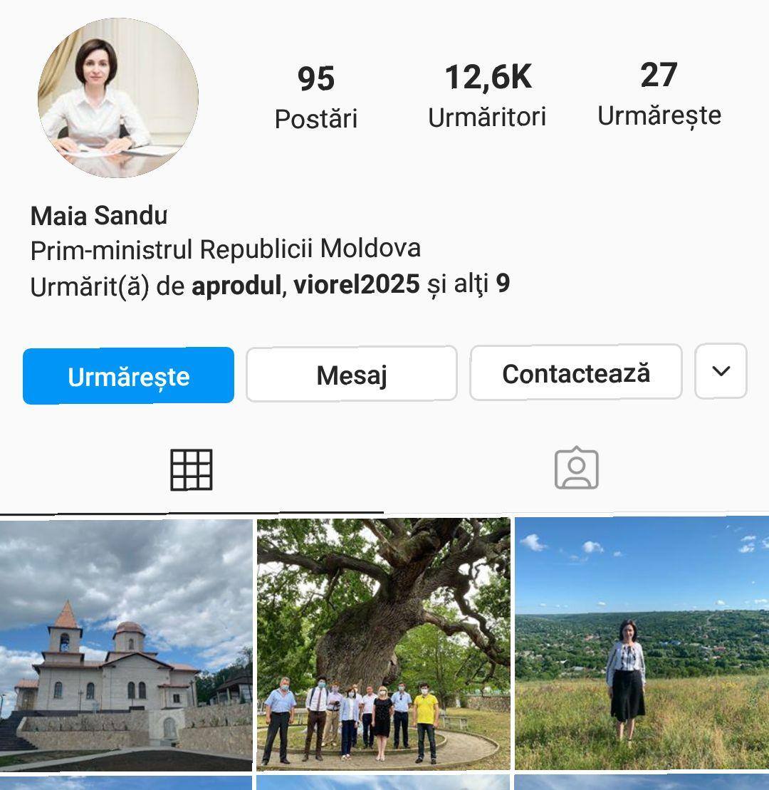 Lidera PAS, Maia Sandu, rămâne să fie prim-ministrul Republicii Moldova doar că pe profilul său de pe Instagram. Chiar dacă a fost demisă în noiembrie 2019, aceasta nu și-a schimbat funcția pe rețelele de socializare.
