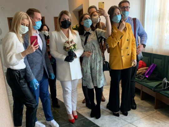 Nunta mai puțin obișnuită a avut loc miercuri, 18 martie, la Kiev. Tinerii însurăței, Leana și Andrei, s-au prezentat la Oficiul Stării Civile al raionului Solomensk cu măști medicale și mănuși. Oaspeții, de asemena, erau echipați corespunzător.