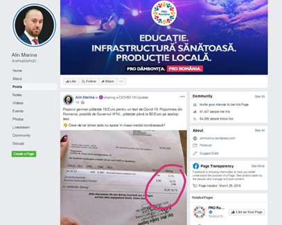 Chiar dacă Alin Marina a revenit ulterior cu o altă postare prin care își anunță prietenii și urmăritorii că: „Se pare, până la urmă, că imaginea cu chitanța de 18 Euro era un #FakeNews, fapt pentru care am șters-o de pe pagină. Se întâmplă și la case mai mari…”, totuși dezinformarea continuă să circule și astăzi pe diverse conturi de Facebook, cum ar fi postarea din 20 iulie al lui Liviu Beșleagă, administratorul grupului România cu peste 731.000 de membri și președinte al unui Comitet de republicani pro-Trump din România: